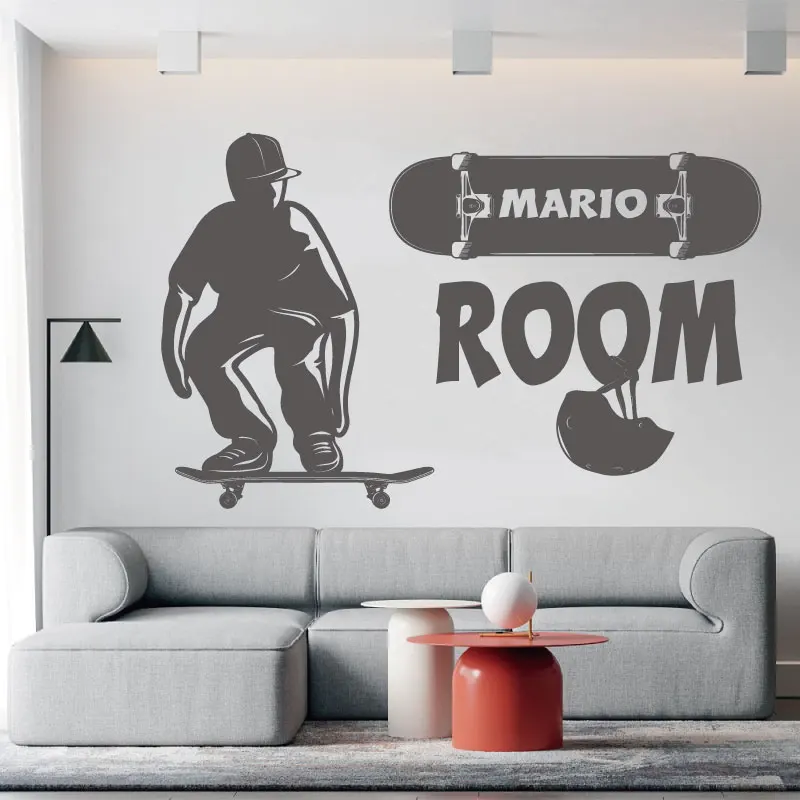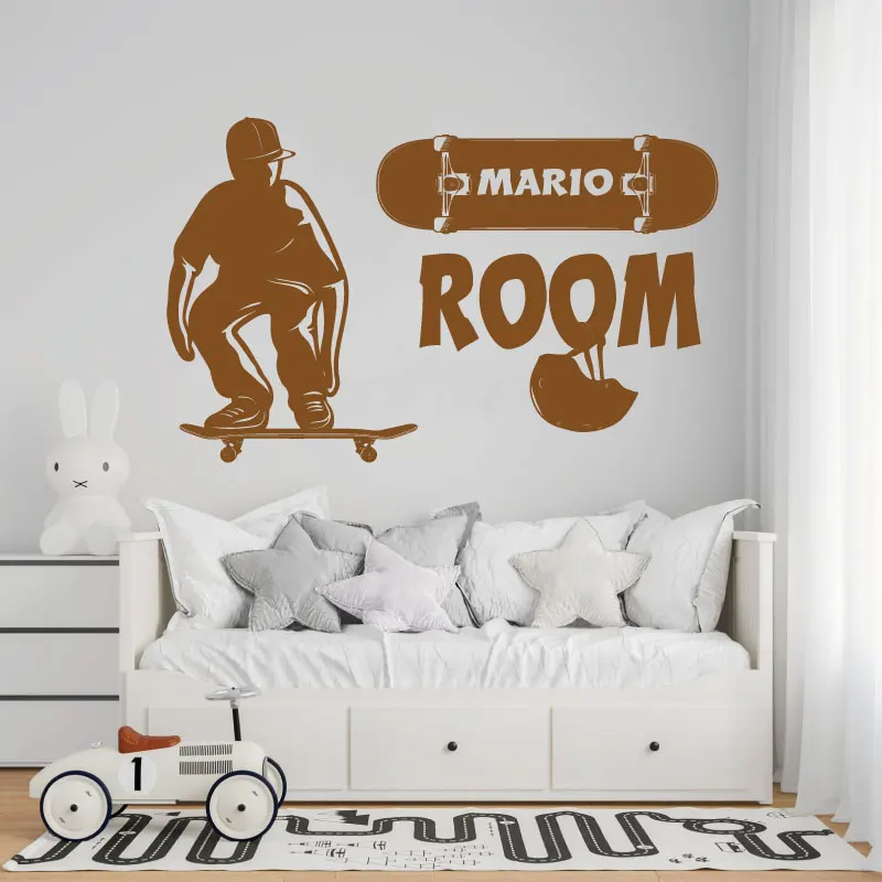 Настраиваемая детская виниловая наклейка с названием для экстремального скейтбординга, украшение для подростков и мальчиков, подарок для детей