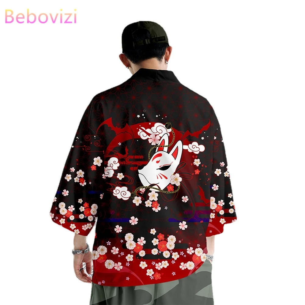 Традиционное японское кимоно для мужчин и женщин, кардиган с аниме ...