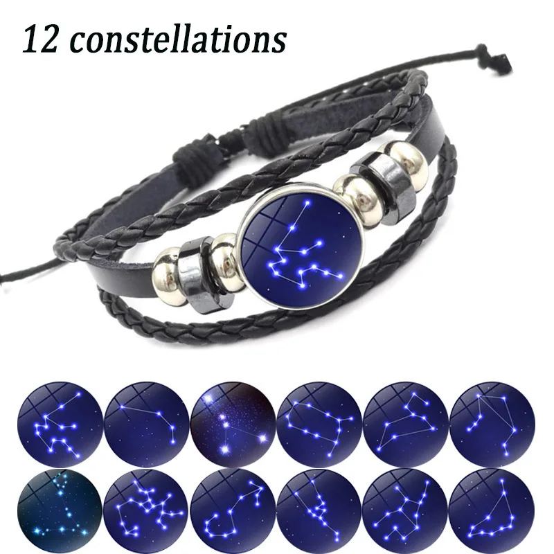 Светящиеся кожаные браслеты ручной работы с принтом зодиака 12 созв...
