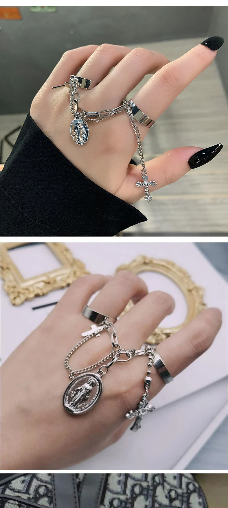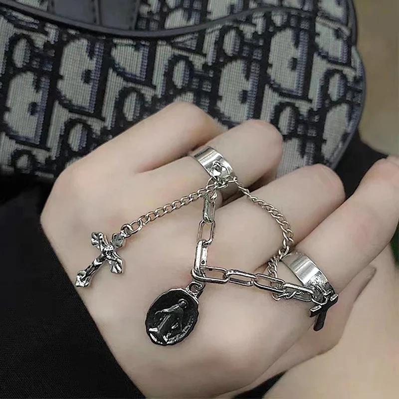Кольцо в стиле ретро, панк, хип-хоп, с крестом, регулируемое кольцо с двумя звеньями, ювелирное изделие, подарок для мужчин, женщин, мужчин, кольца в готическом стиле, 2021