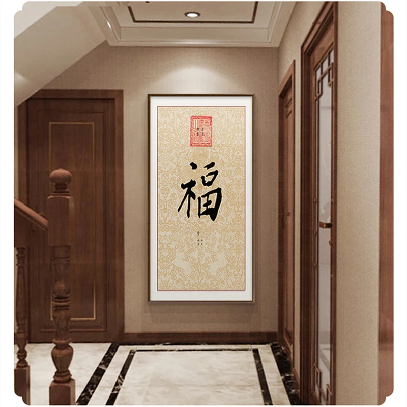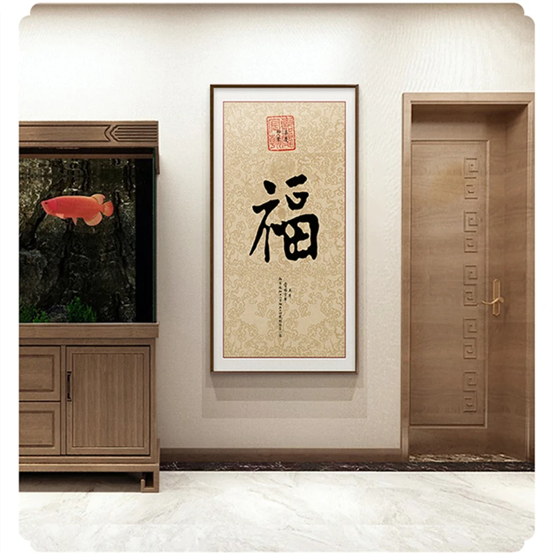 Каллиграфия фу в традиционном китайском стиле ретро настенная Картина на холсте постер картина для офиса гостиной домашний декор