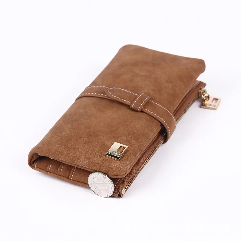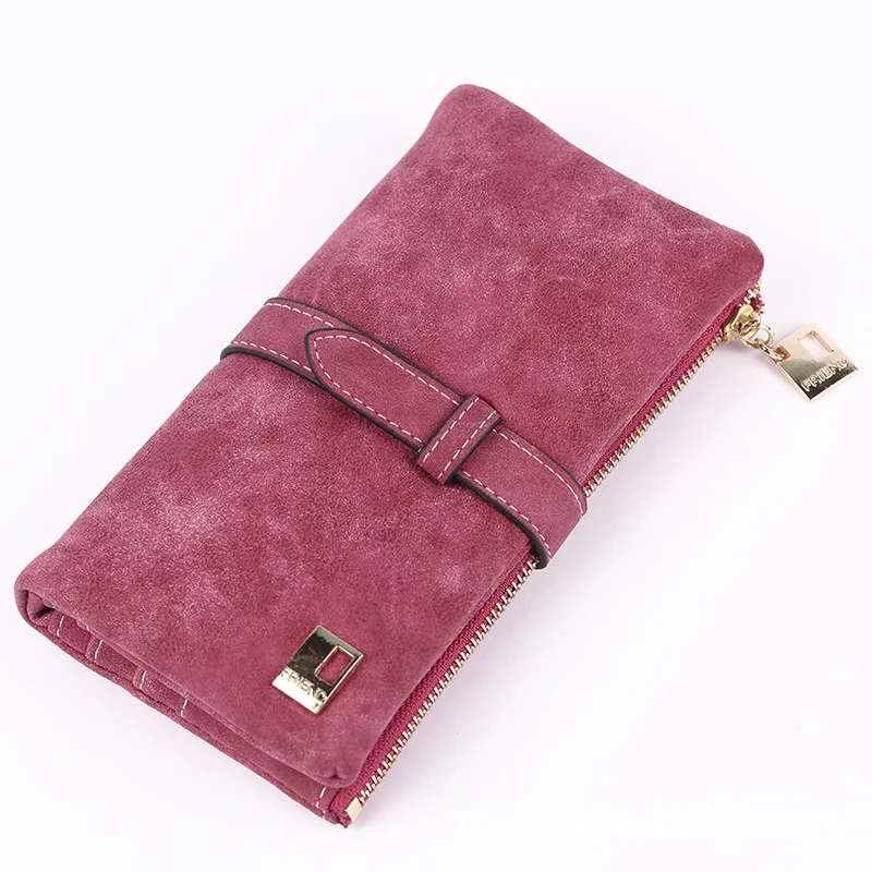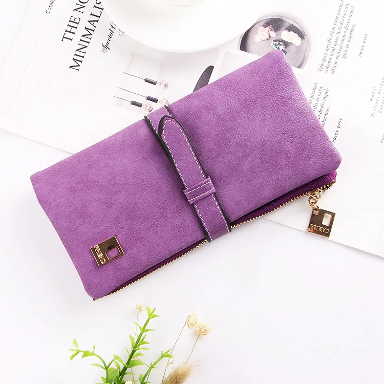 Длинный кошелек двойного сложения, женские кошельки от известного бренда, замшевый кошелек из нубука на шнурке и молнии, женский кошелек, женский клатч