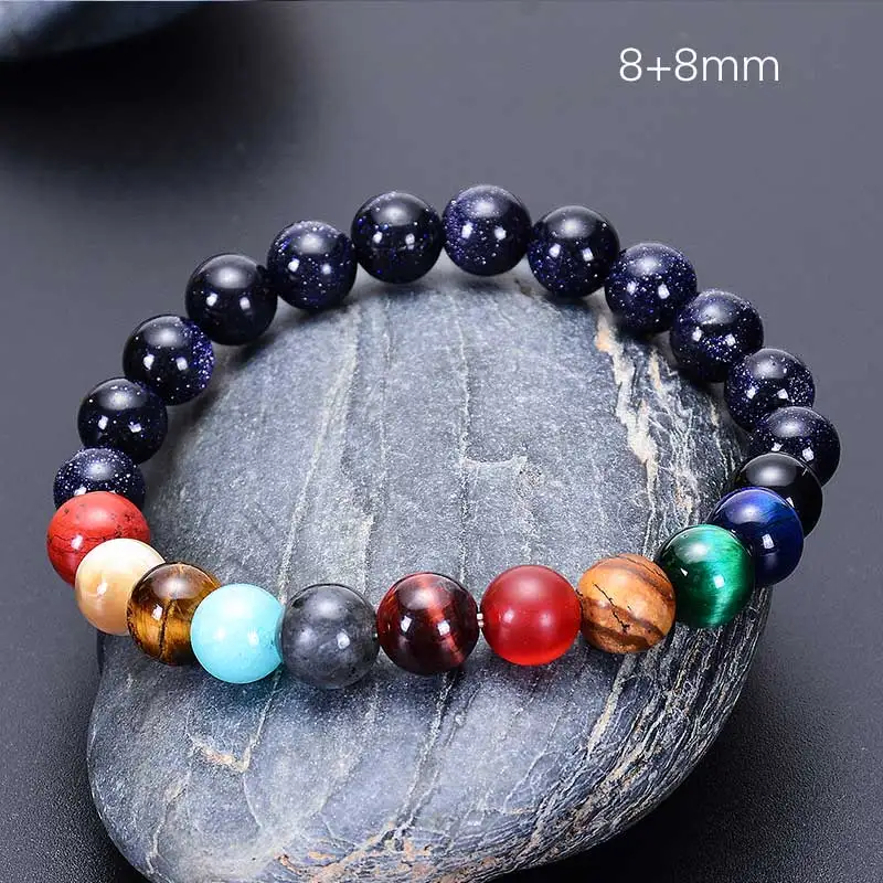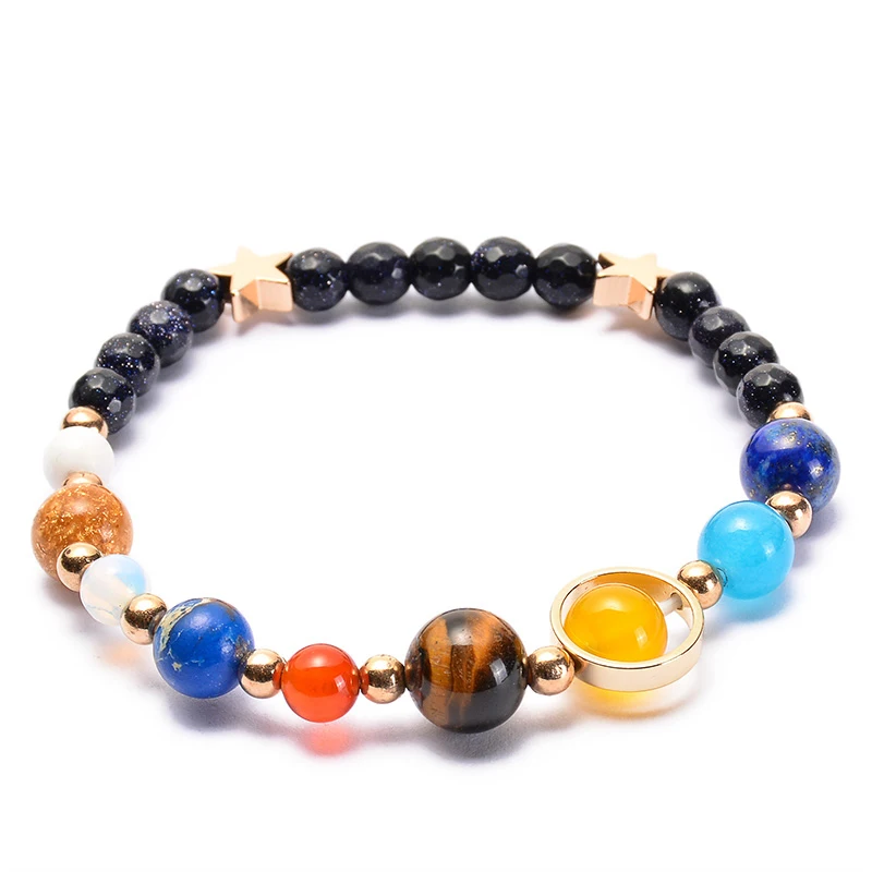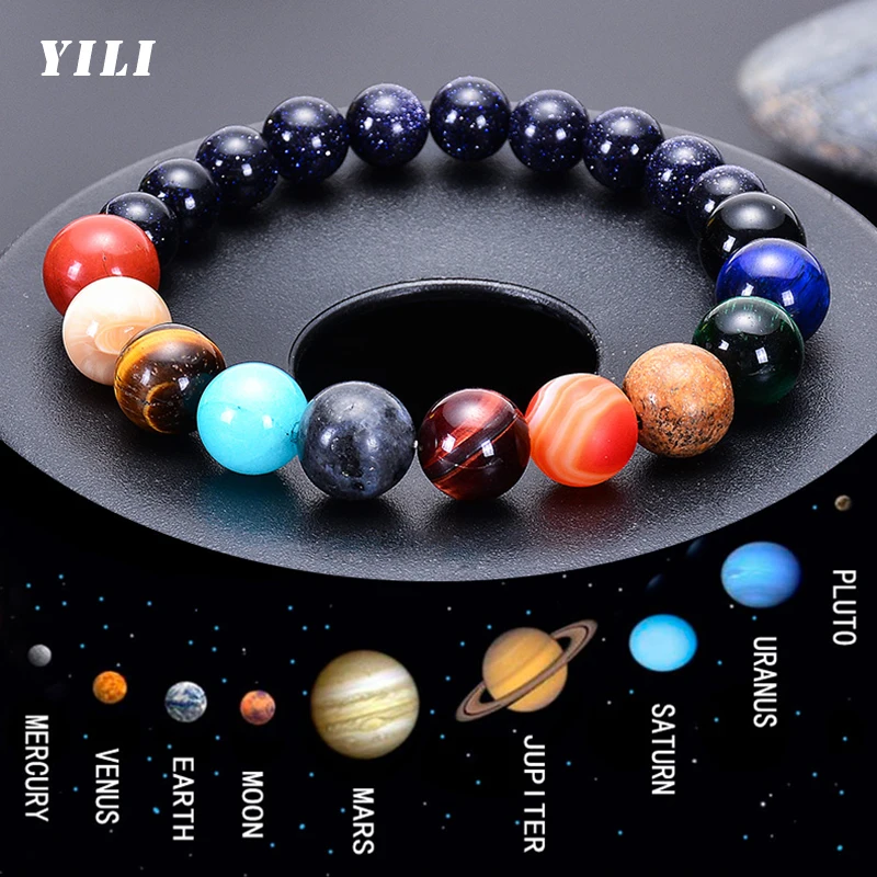 Браслет из бусин с восьми планетами для мужчин и женщин, классический браслет с бусинами из натурального камня, браслеты со Вселенной, Галактикой, Солнечной системой, планетами