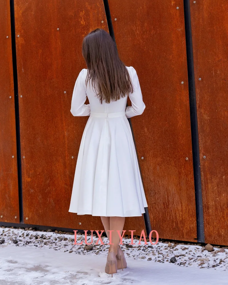 Простые короткие свадебные платья LUXIYIAO LO183 с длинным рукавом 2022 атласные платья длиной ниже колена пляжные садовые Свадебные платья на заказ