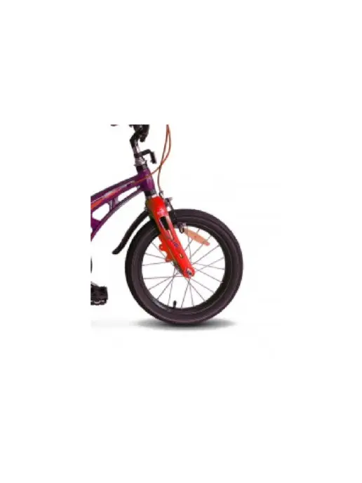 Велосипед, предназначенный для детей в возрасте от трех до шести лет, без переключения передач. Технические особенности: рама из магниевого сплава, жесткая вилка, усиленные обода, передний тормоз - ободной, задний тормоз - дисковый, защита цепи, съемные боковые колеса, звонок. Подходит для обучения и прогулочного катания в городских условиях. Диаметр колес - 16 дюймов. Вес - 9 кг.