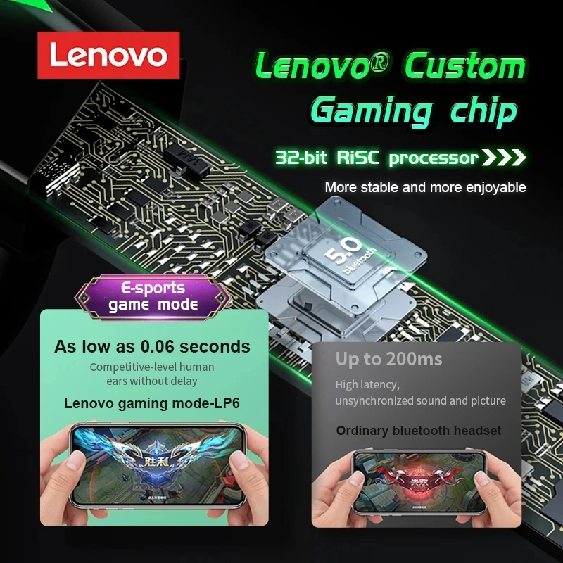 TWS-наушники Lenovo LP6 с поддержкой Bluetooth 5,0, без задержки