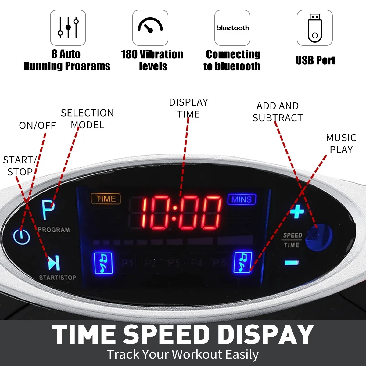 Характеристики: Цвет: серебристый Материал: сталь + пластик Размер: около 53x31x1 3 см/20,87 "x 12,20" x 5,11" [Перевод единиц измерения: 1 см = 0,3937 дюйма, 1 дюйм = 2,54 см] Напряжение штепсельной вилки: штепсельная вилка стандарта США 110 В, штепсельная вилка европейского стандарта 220 В Мощность: 500 Вт Амплитуда: 0-12 мм Максимальная нагрузка: 200 кг/441LBS Уровни скорости: 180 уровень Пульт дистанционного управления: батарейки в комплект не входят Bluetooth: Да