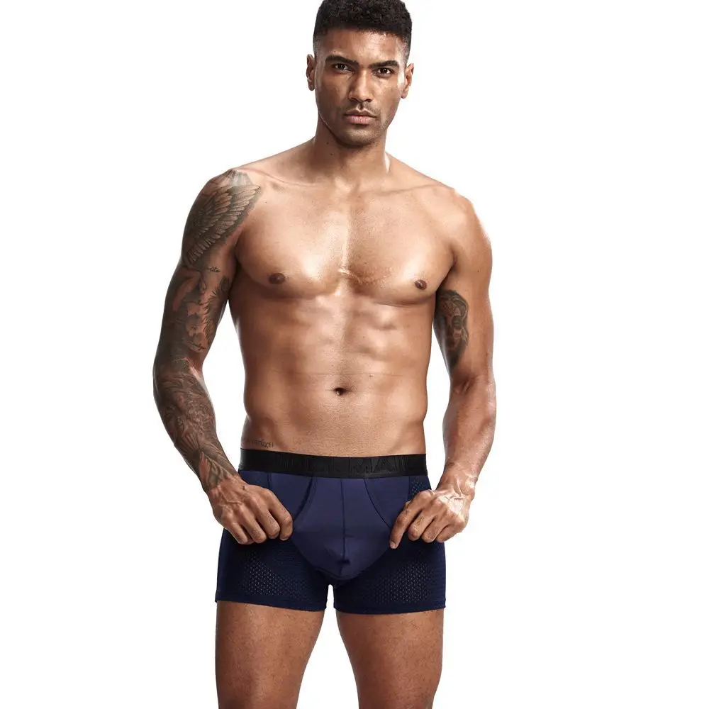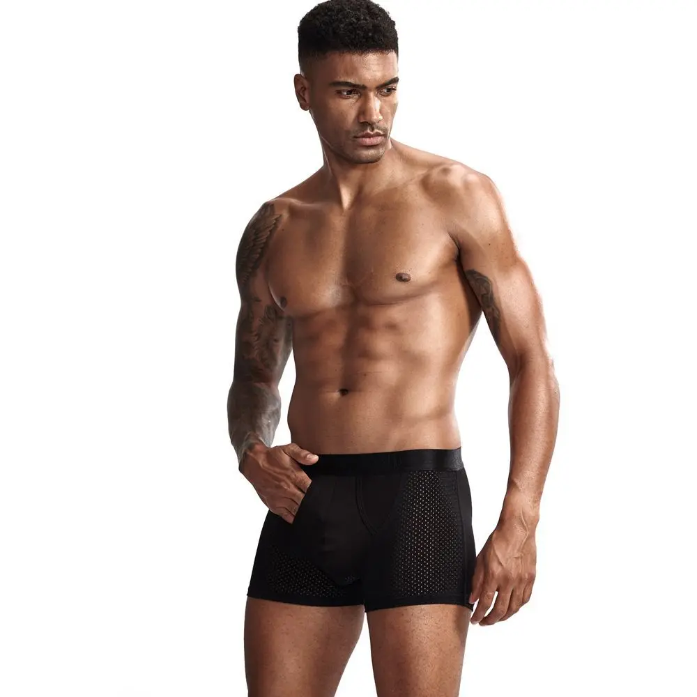 Трусы-боксеры мужские сетчатые, хлопковые трусы-боксеры с U-образны...
