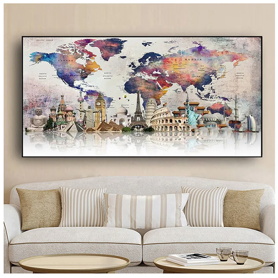 Большая Алмазная 5d картина сделай сам, красочная карта мира, полный квадрат, Круглый Биг-Бен, архитектура, алмазная вышивка, Набор для вышивки крестиком