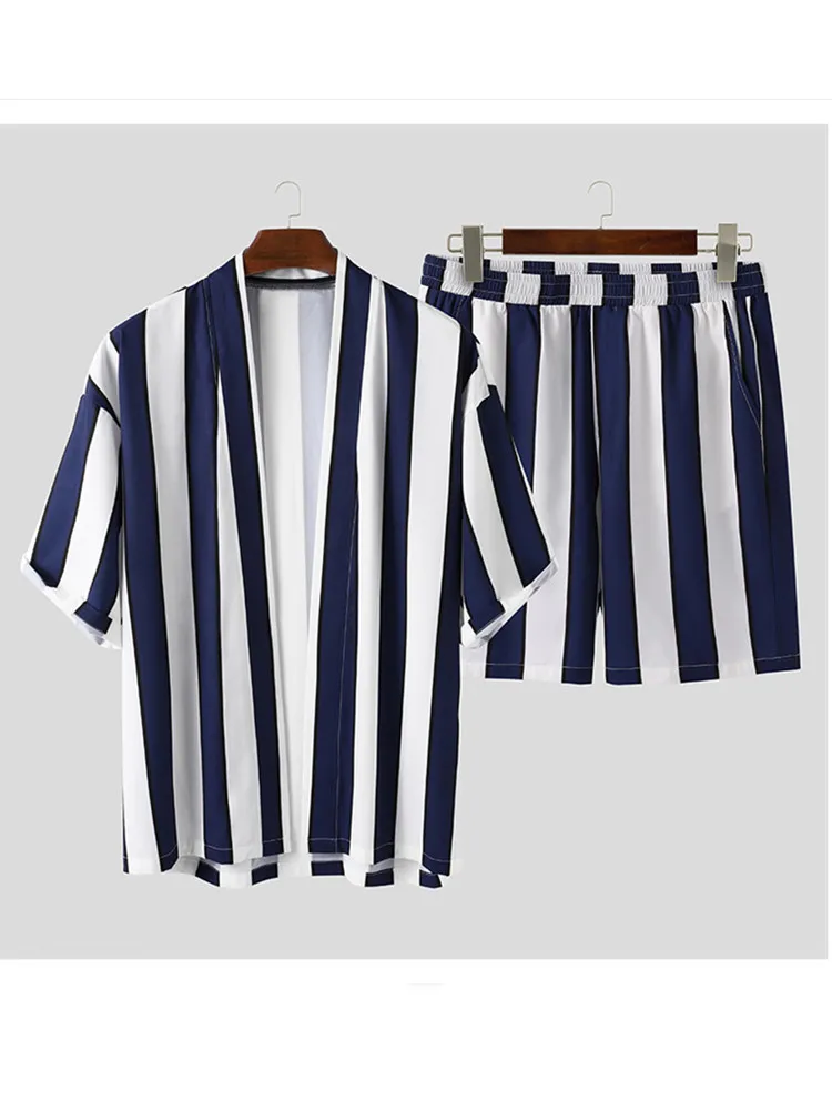 Мужской комплект из 2 предметов, полосатый кардиган и шорты в японс...