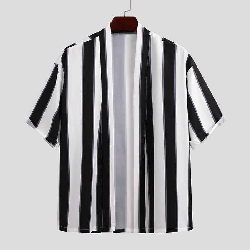 Костюм-кимоно мужской в полоску, Свободный кардиган, рубашка с коро...