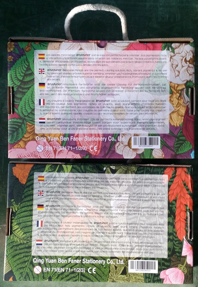 Заказ с доставкой из РФ, доехал по Подмосковью за три дня. Упакован был серьёзно - в дополнительную картонную коробку с пенопластовыми вкладышами; в дороге не пострадал. По дефектам: один карандаш в двух экземплярах (сине-сиреневый цвет v54); попадаются неоднородности другого цвета в грифелях, особенно серых цветов (что особенно обидно, так как ради обилия серых оттенков такой большой набор и имеет смысл покупать), твёрдость и равномерность покрытия варьирует от цвета к цвету. В целом же карандаши вполне приличные за свою цену. Попадаются очень похожие цвета, но это при таком количестве ожидаемо. Достаточно мягкие, крошатся не сильно, неплохо смешиваются (не смейтесь: даже при наличии 520 оттенков смешивать их рано или поздно придётся), накладывать можно до 5-6 слоёв (в зависимости от бумаги), хорошо точатся и не ломаются при заточке. В комплекте было два листа для выкрасок.
