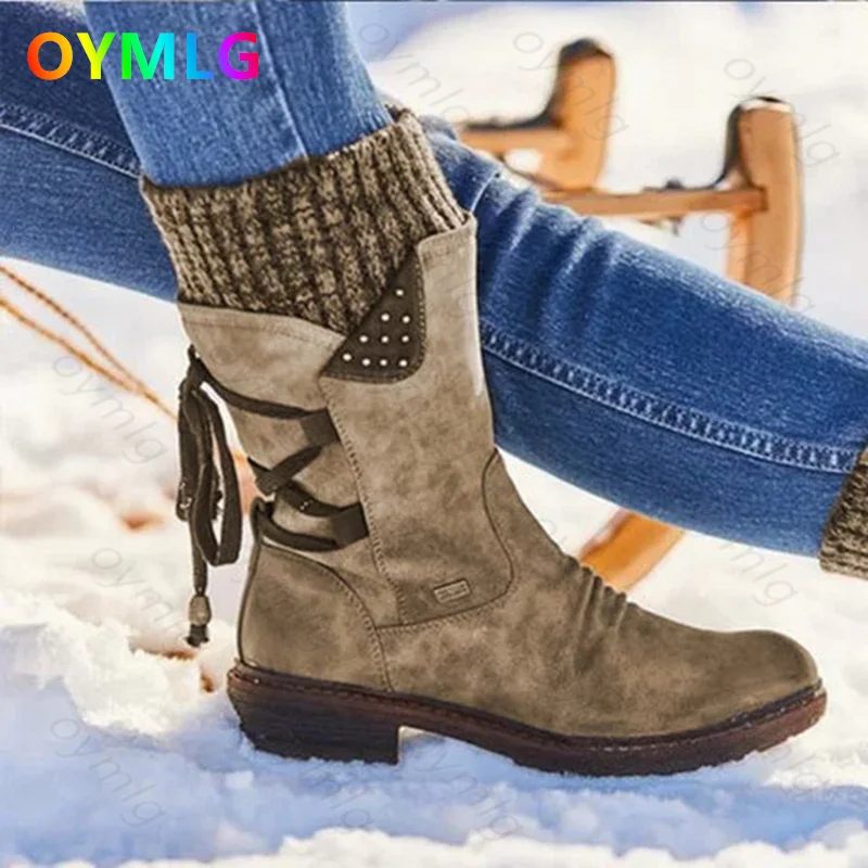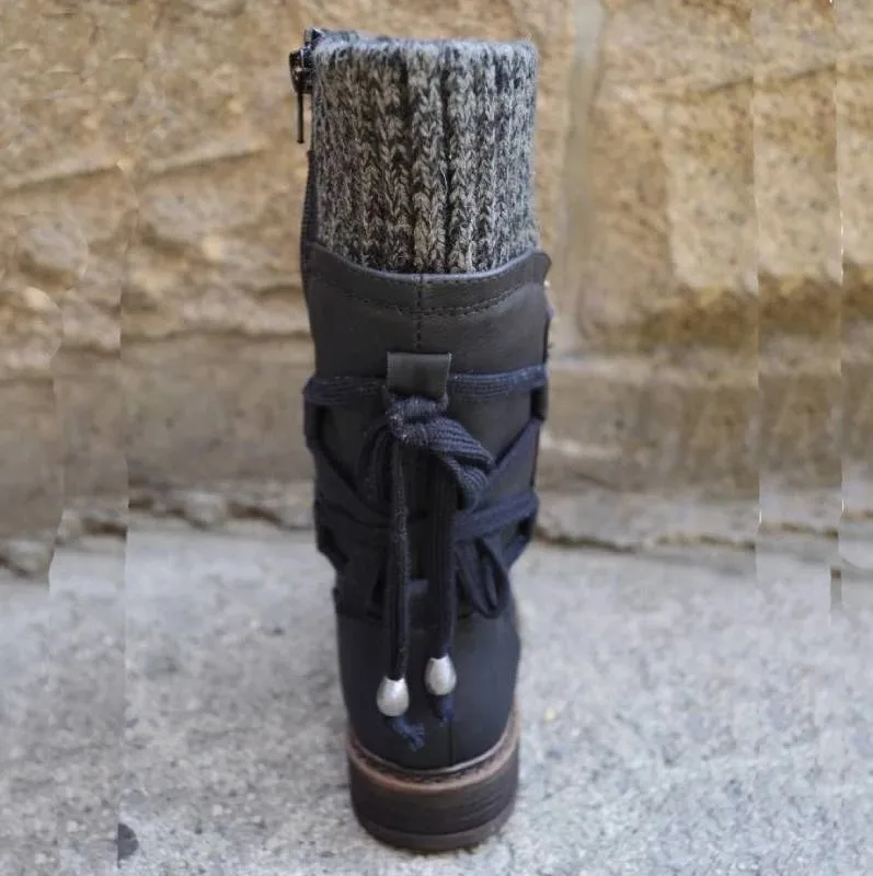 Модные женские сапоги из искусственной кожи с перекрестными ремешка...
