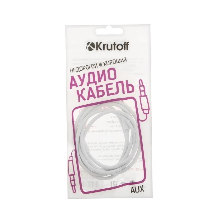 Кабель аудио AUX Krutoff Classic, Jack 3.5 мм-Jack 3.5 мм, 1 м, белый 4849778