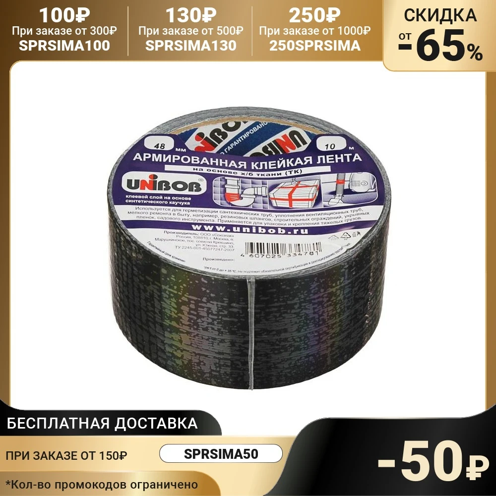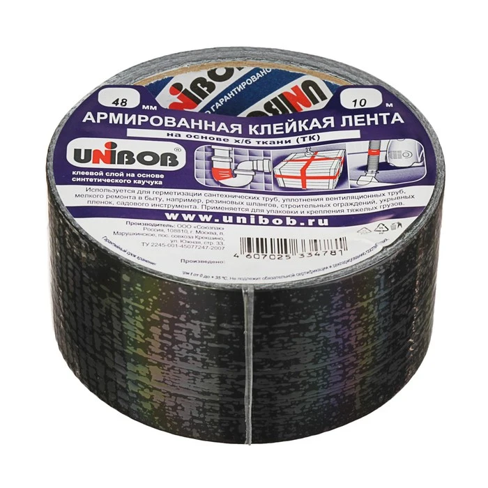 Клейкая лента Unibob армированная чёрная 48мм х 10м 3806934