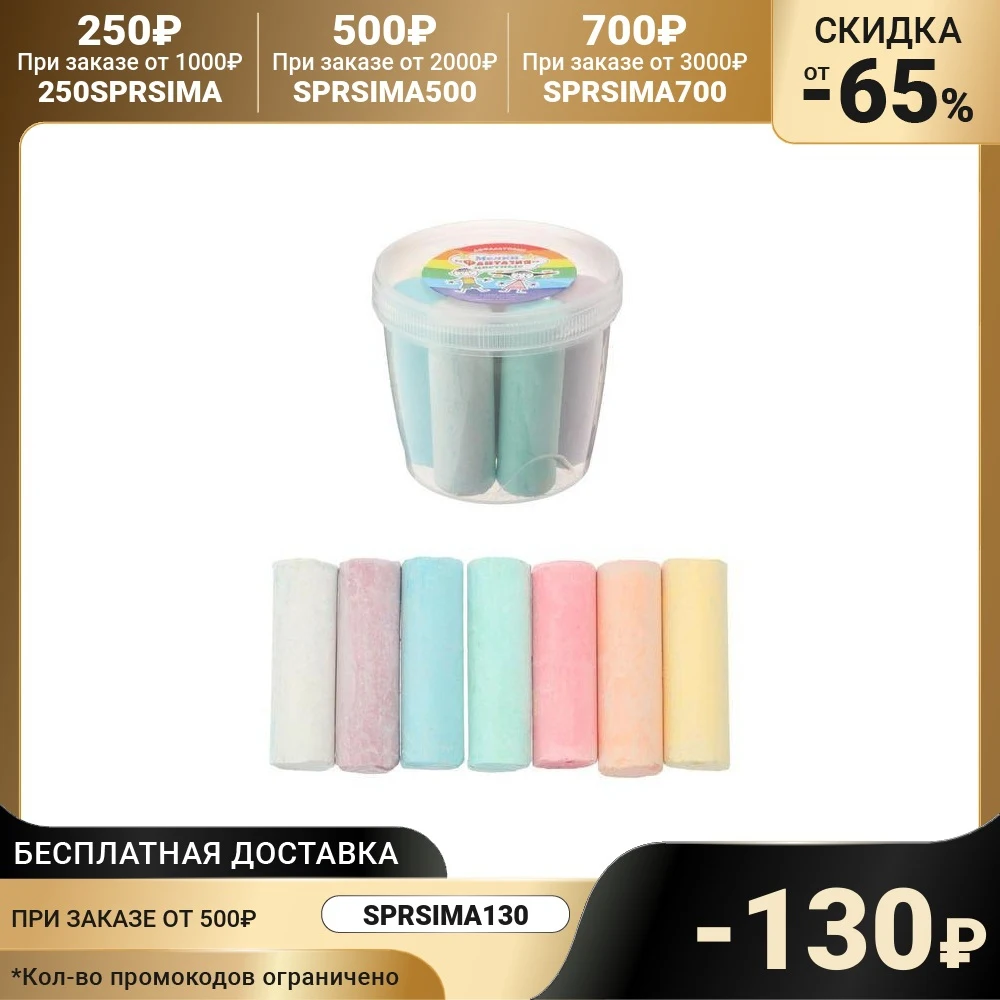 Мелки цветные для асфальта 7 штук Фантазия, цилиндр