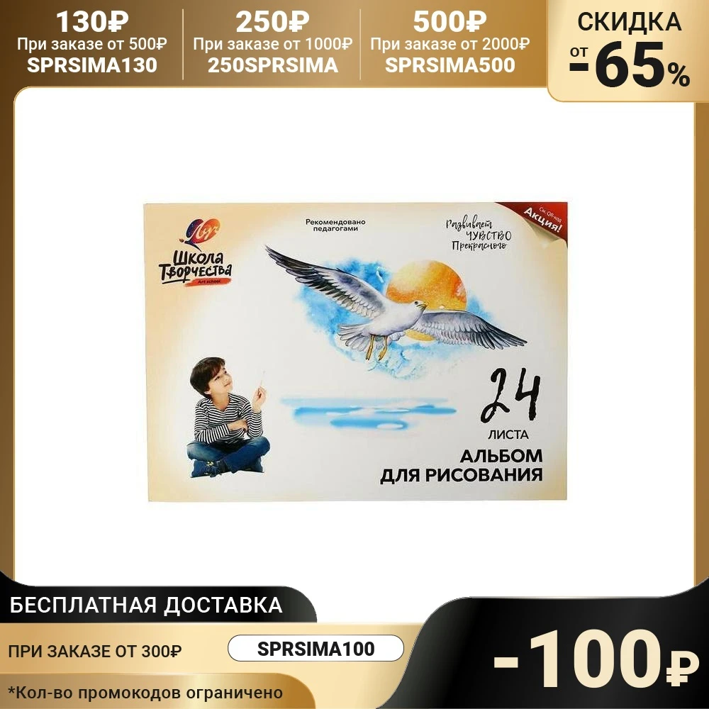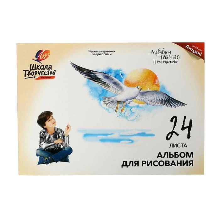 Альбом для рисования А4, 24 листа на клею «Луч» Чайка, блок офсет 100 г/м2