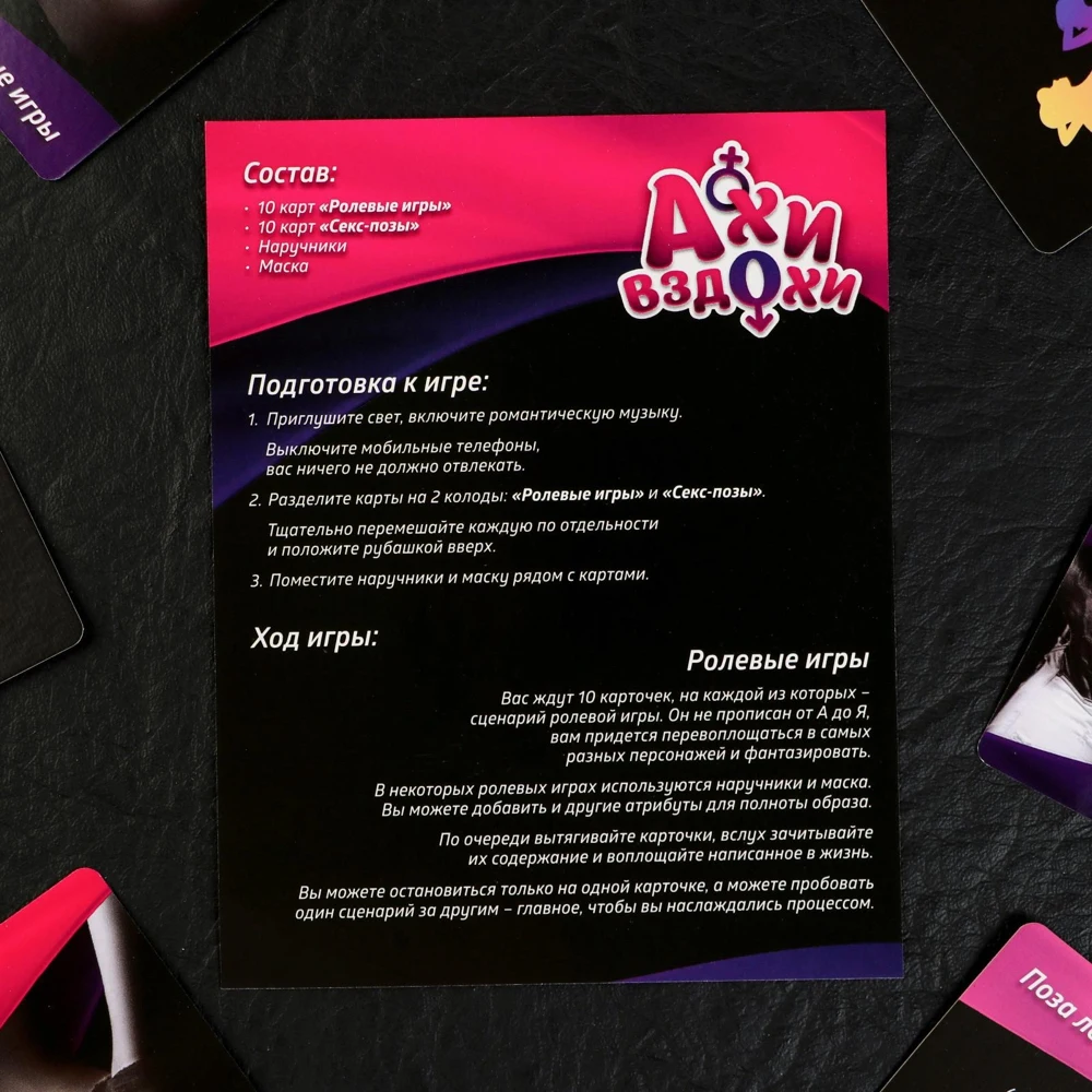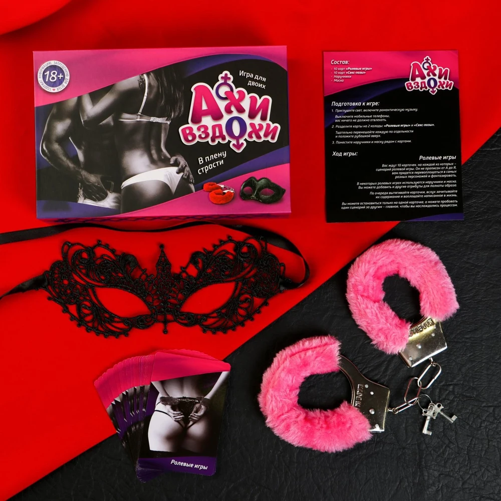 Игра для двоих Ахи-вздохи. В плену страсти, 20 карт, маска, наручники