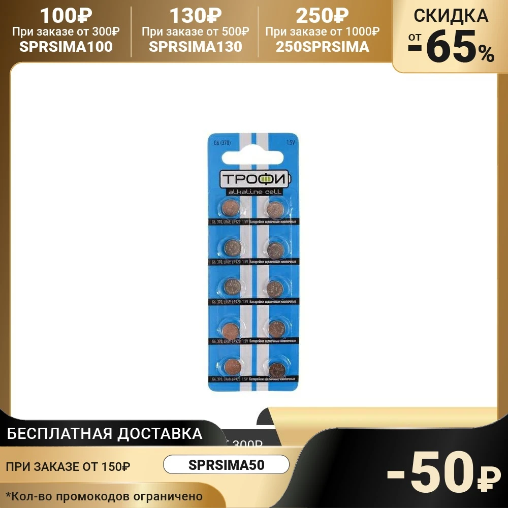 Батарейка алкалиновая "Трофи" Alkaline Cell, G6 (370, LR920, LR69)-10BL, 1.5В, блистер,10 шт. 824117
