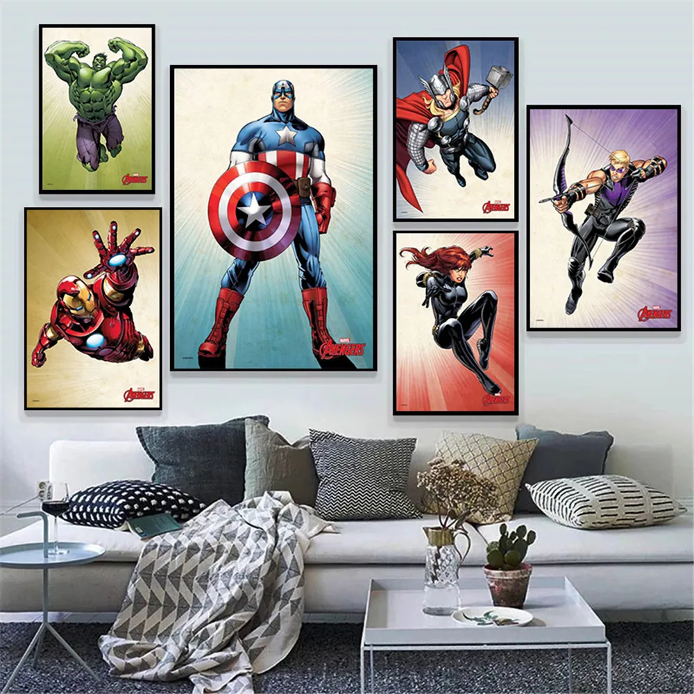 Постер из комиксов Marvel Мстители, Халк, Капитан Америка, украшение для дома в скандинавском стиле, Настенная роспись на холсте для подростков, спальни, настенная роспись