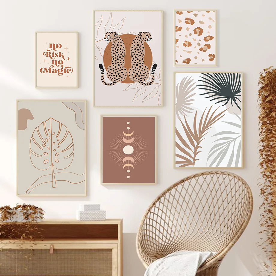 Настенная картина Strelitzia Monstera, леопард, змея, солнце, луна, настенные картины на холсте, скандинавские постеры и принты, настенные картины для декора комнаты в стиле бохо