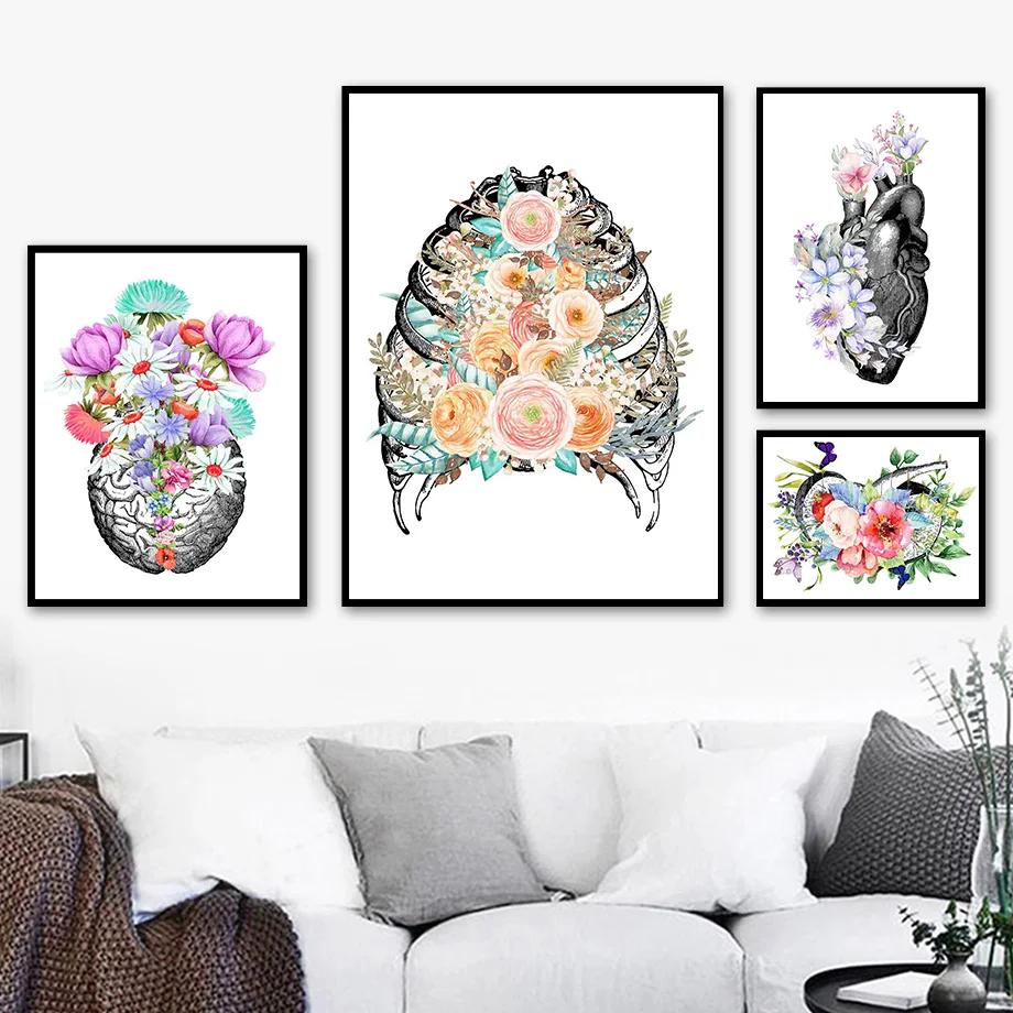 Настенная Картина на холсте с изображением человеческих органов, сердца, печени, ребер легких, почек, скандинавские постеры и принты, настенные картины для декора клиники и комнаты