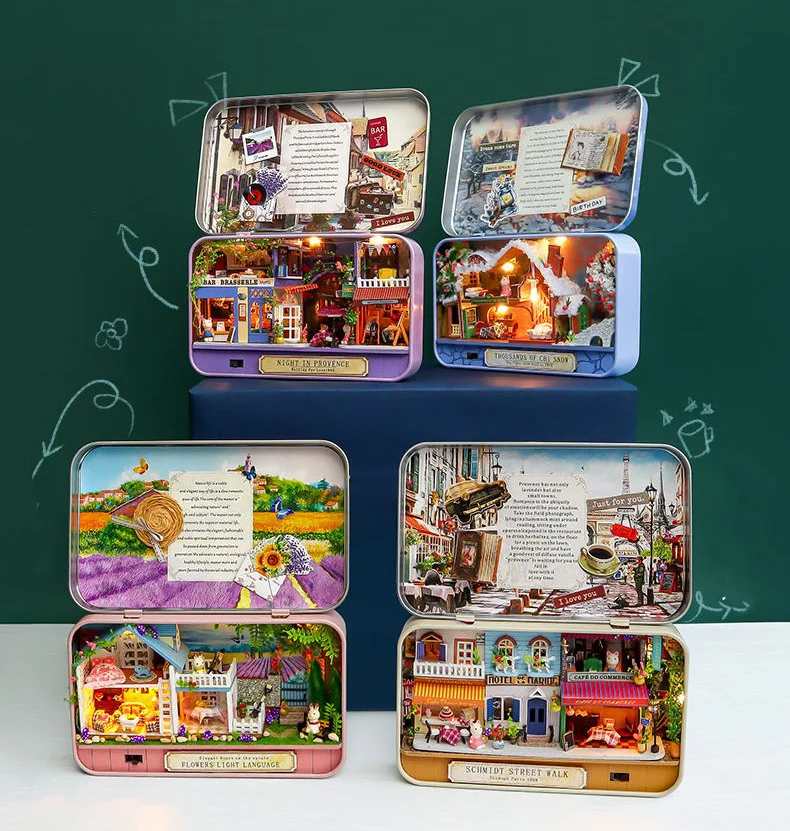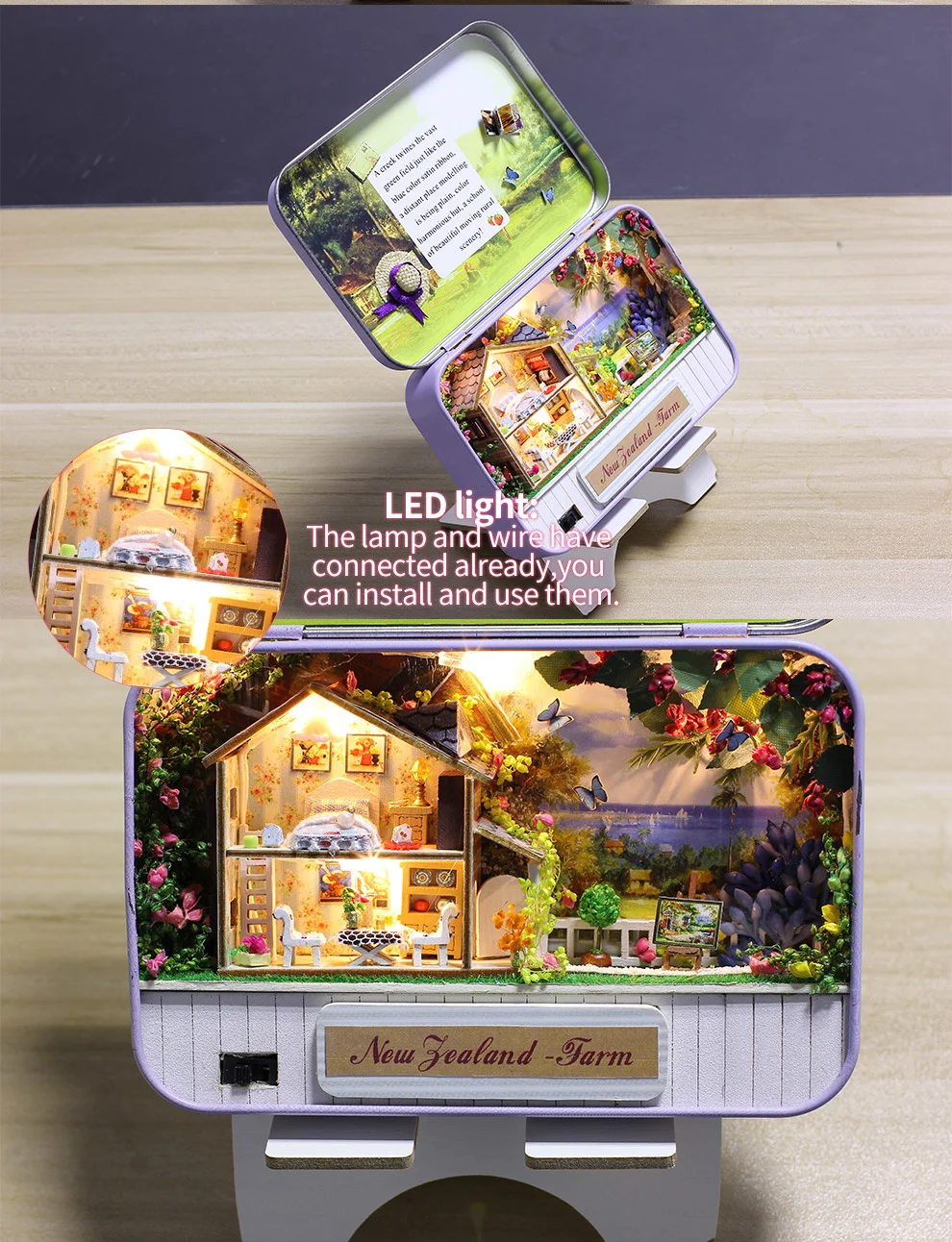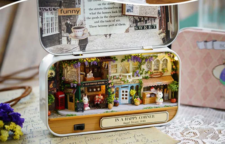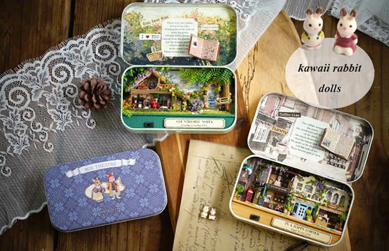 Набор миниатюрных кукольных домиков сделай сам с маленьким медведем, Кроликом, мебелью Roombox, кукольный домик, игрушки для детей, подарки для девочек