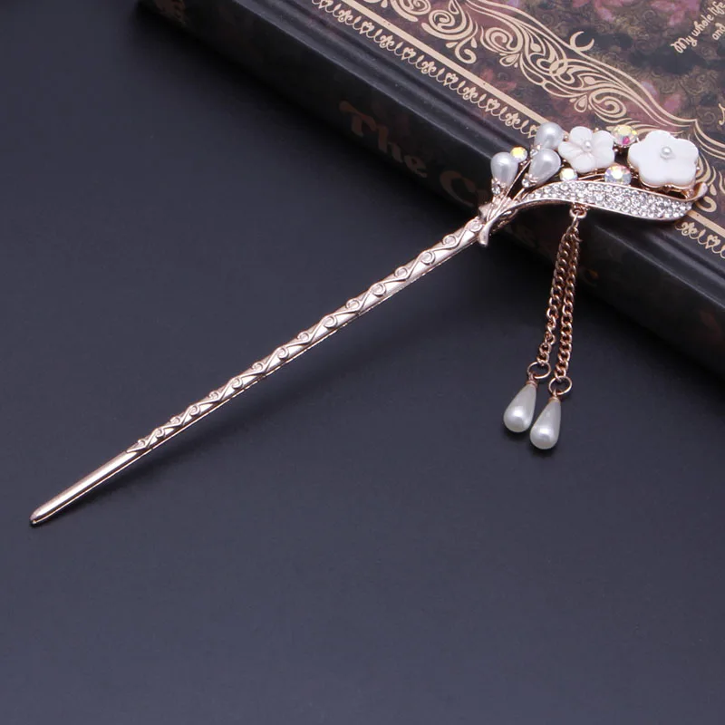 Палочка для волос с кристаллами и жемчугом, китайские палочки для еды, винтажная шпилька для волос с кисточками, вилка для волос для женщин
