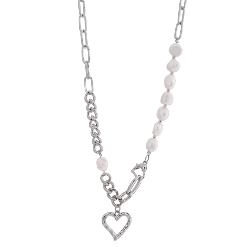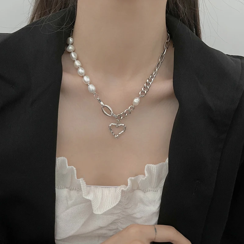Винтажное круглое ожерелье-чокер с пресноводным жемчугом для женщин, новинка 2021, Летний милый кулон-сердце, цепочка из нержавеющей стали, ювелирные изделия в стиле панк