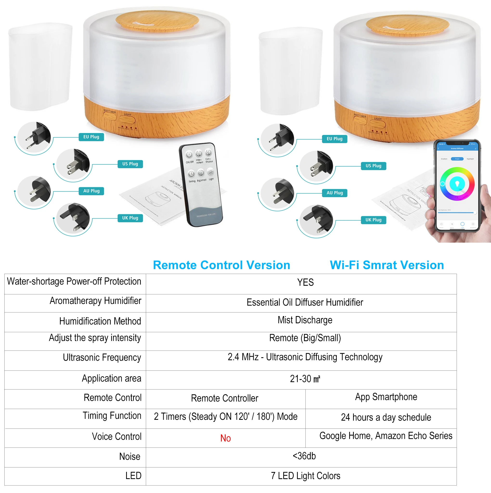WiFi смарт-Эфирное Масло Диффузоры умный дом туман увлажнитель 500 мл ультразвуковой Арома освежитель воздуха Alexa Echo Google Assistant