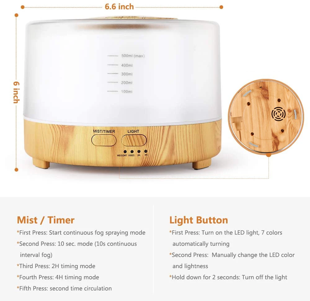 Емкость воды 500 мл для использования до 6-12 часов. Запланируйте умный Ароматерапевтический диффузор для включения/выключения в определенное время, чтобы удовлетворить ваши различные потребности в использовании.