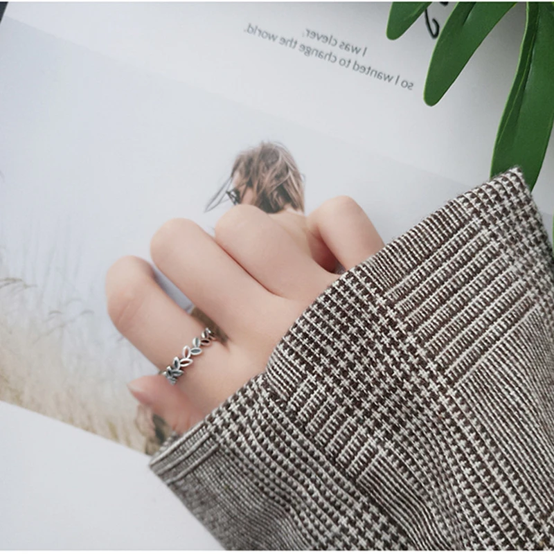LKO Настоящее серебро 925 пробы, модное винтажное кольцо в виде листьев, регулируемые кольца для женщин, украшения для вечеринок