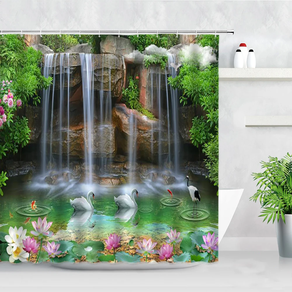 Занавеска для ванной с 3D-принтом в виде лебедей, декоративная Водо...
