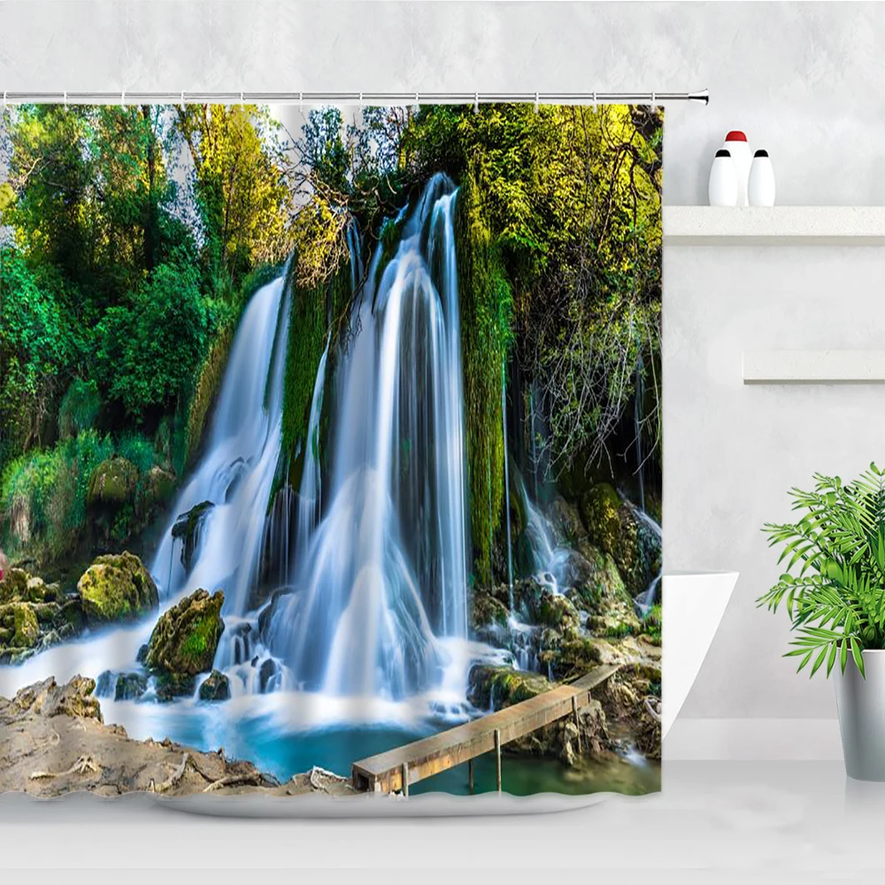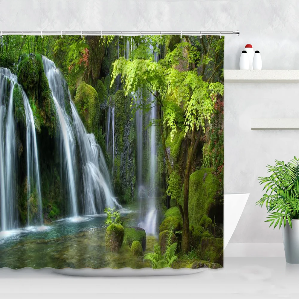 Тканевая занавеска для душа, с 3d-изображением водопада, джунглей, ...