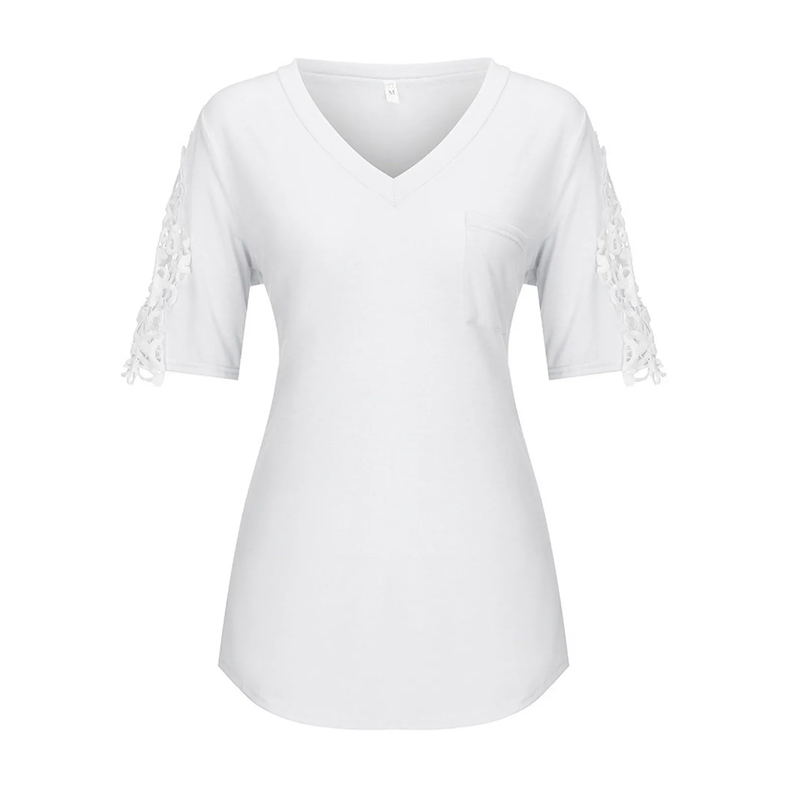 Модная Кружевная футболка с рукавом, пикантная свободная футболка с круглым вырезом, топы, футболка, повседневные летние женские блузы с коротким рукавом, пуловер