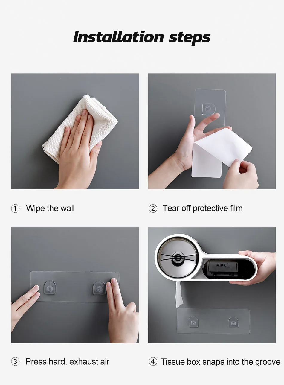 1. Самоклеящаяся установка, не требующая повреждения стены, простая и простая установка и сильное сцепление.