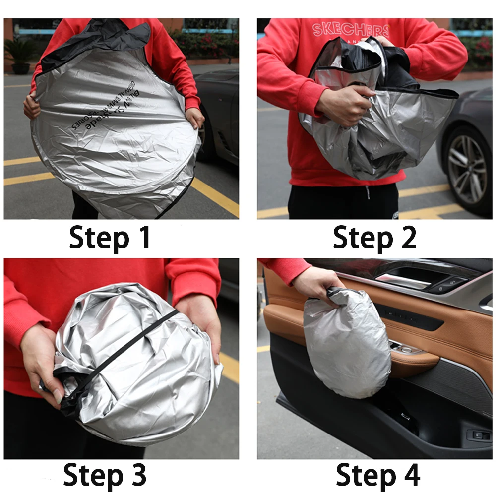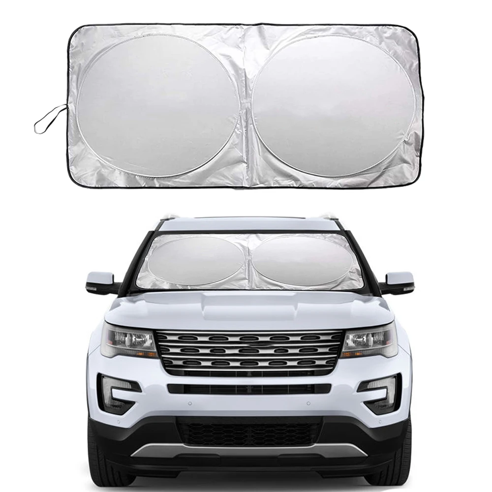 Название продукта: солнцезащитный козырек для автомобиляПодходит для: переднего и заднего ветрового стеклаМатериал: светоотражающий и прочный с складной металлической рамкойЦвет: черный + серебристый