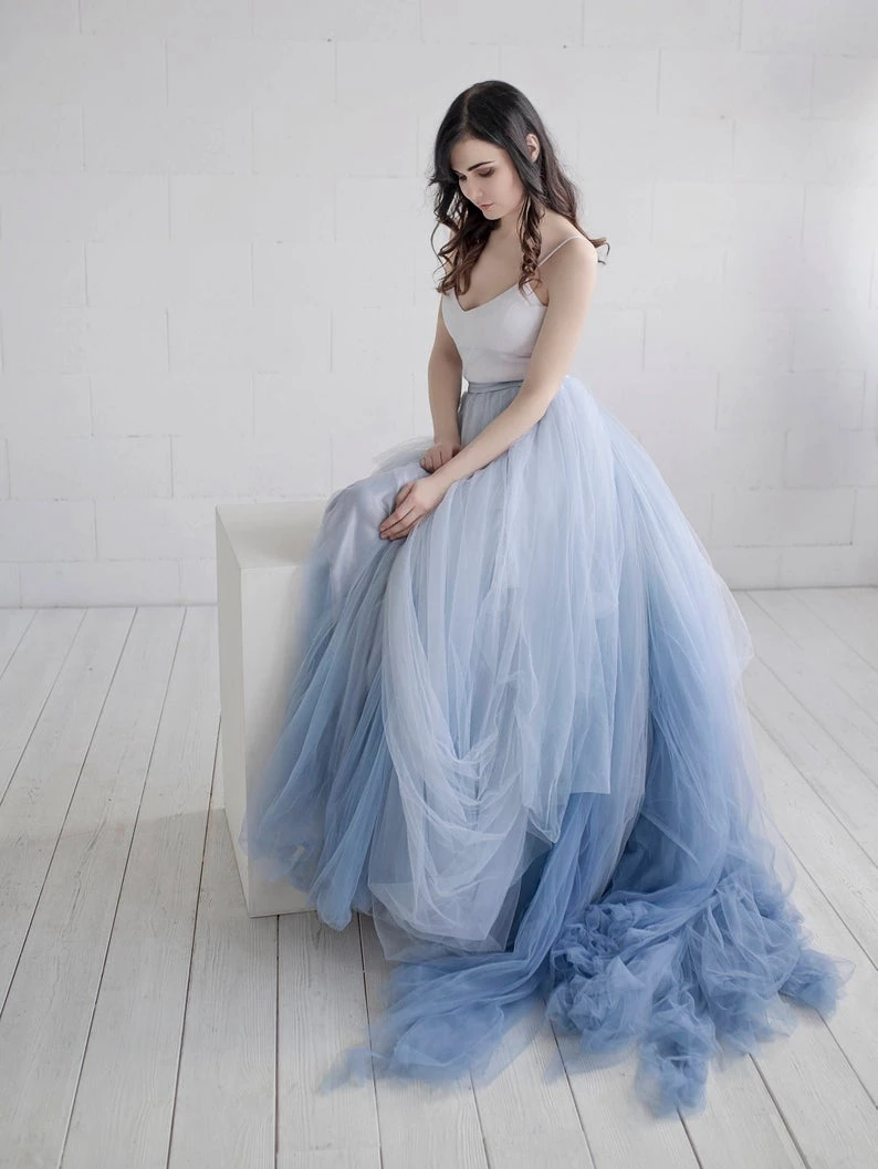 Свадебные юбки, кружевное и Тюлевое свадебное платье на заказ, окрашенное Омбре, свадебное платье пыльно-голубого цвета, свадебная юбка с открытой спиной и шлейфом
