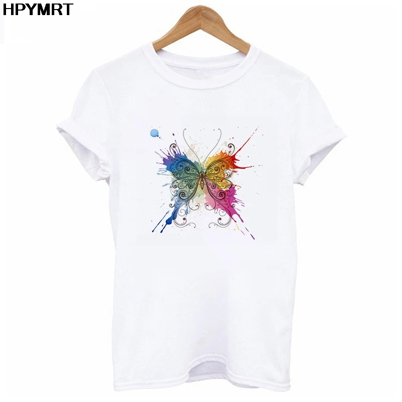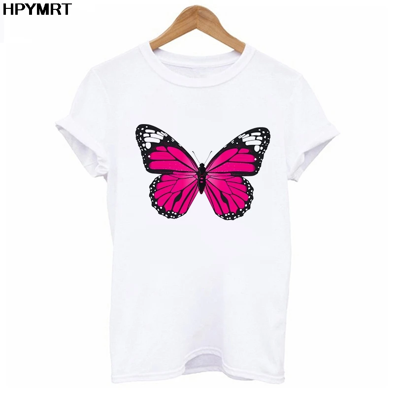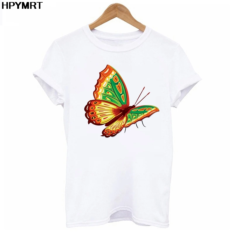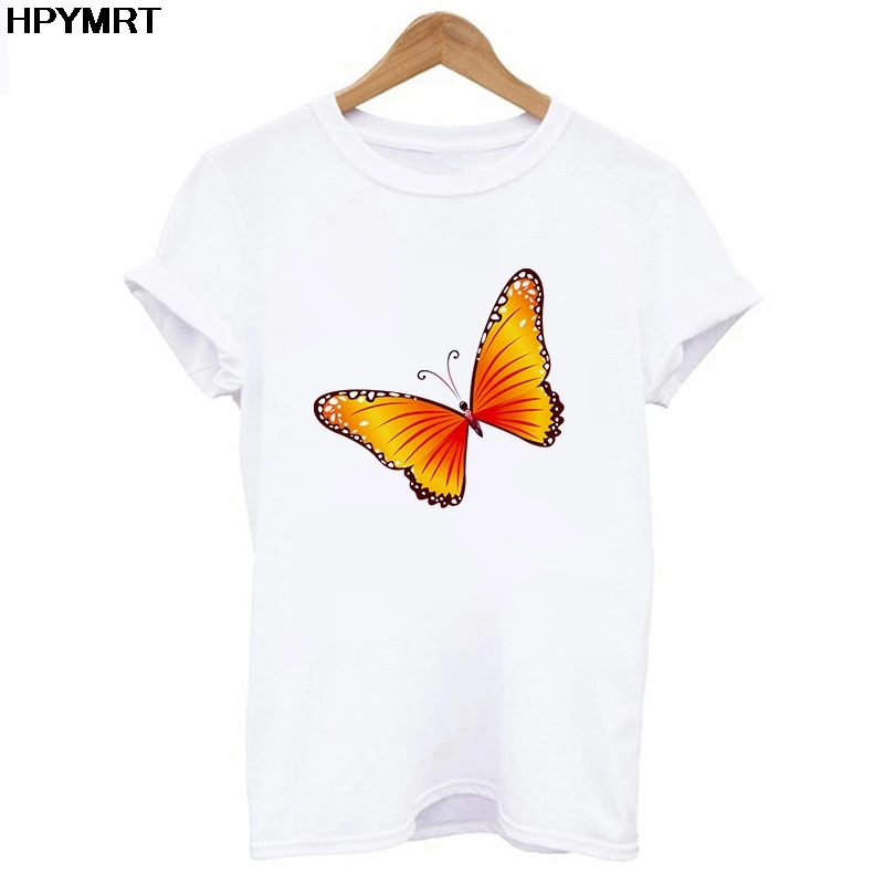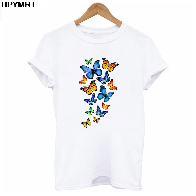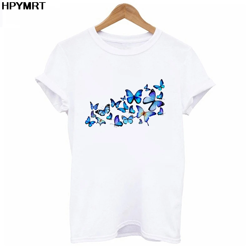Летняя женская футболка с мультяшным принтом в виде бабочки