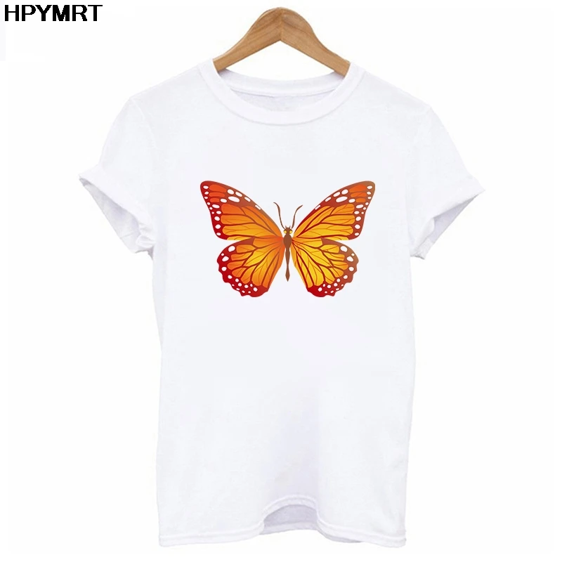 Женская футболка с принтом бабочки, топы, футболки с коротким рукав...