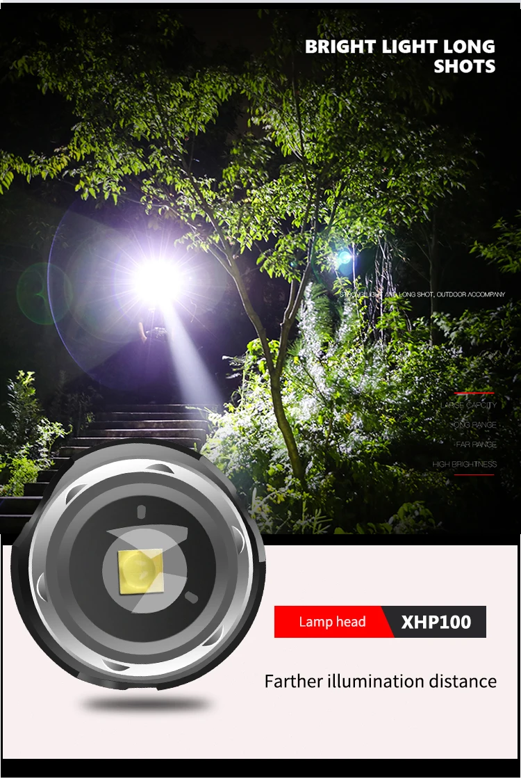Мощный XHP100 светодиодная вспышка светильник фонарь светильник Usb Перезаряжаемые Водонепроницаемый лампа ультра яркий для путешествий на открытом воздухе Охота