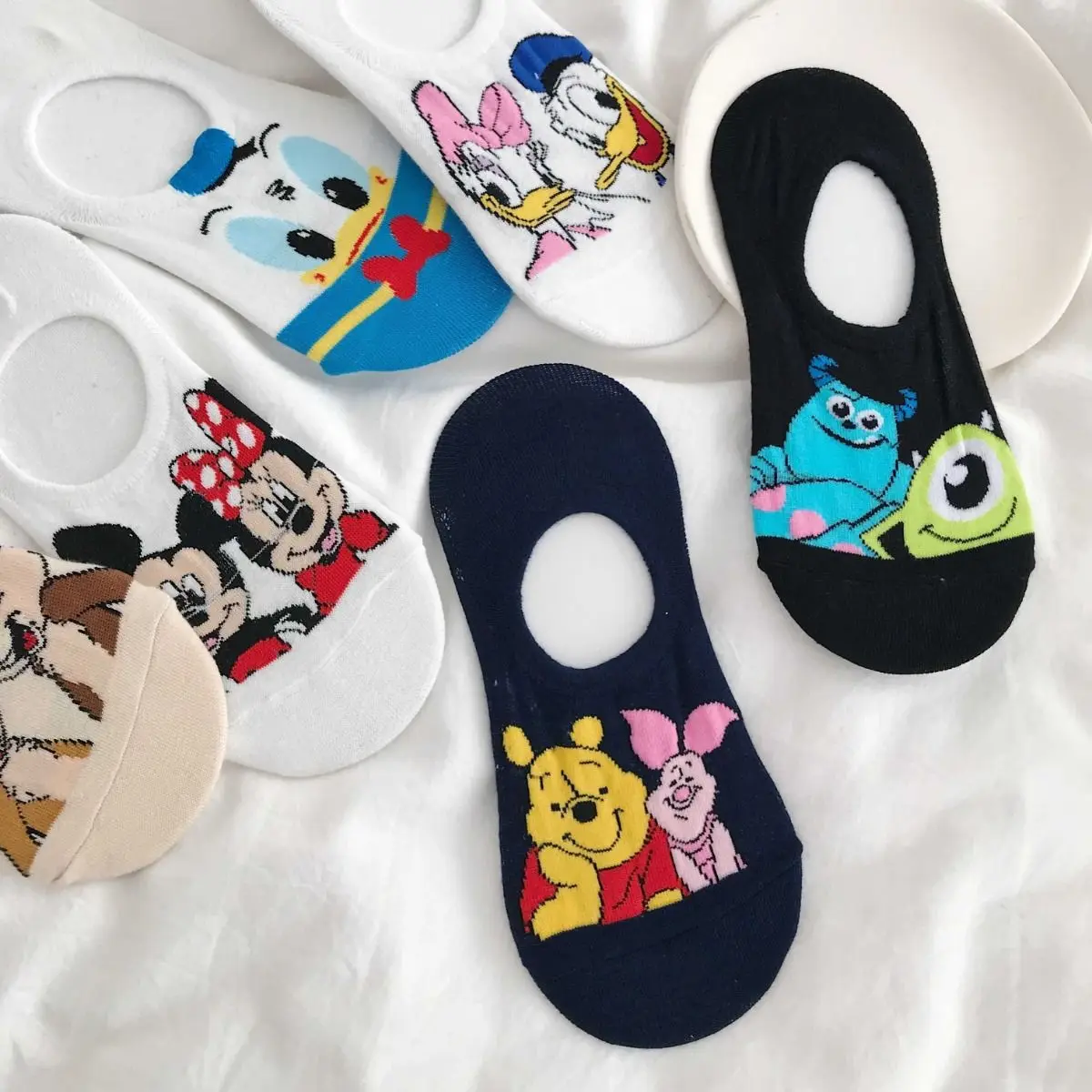 Носки женские летние хлопковые невидимые с рисунком Микки Мауса, Размеры 35-41, 5 шт.