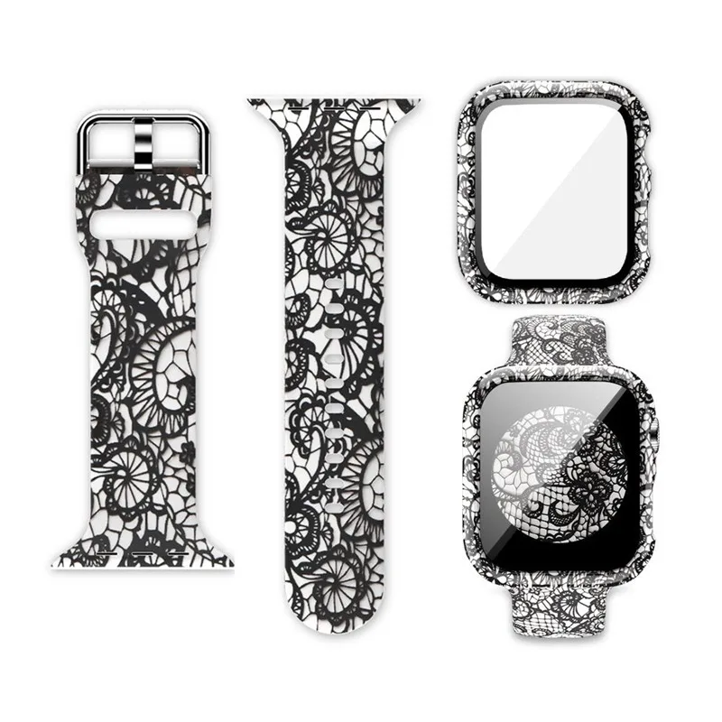 Набор для Apple Watch Series 6 5 4 3 2 1 SE, чехол с леопардовым принтом зебры и цветком 9H, чехол из закаленного стекла, ремешок на запястье