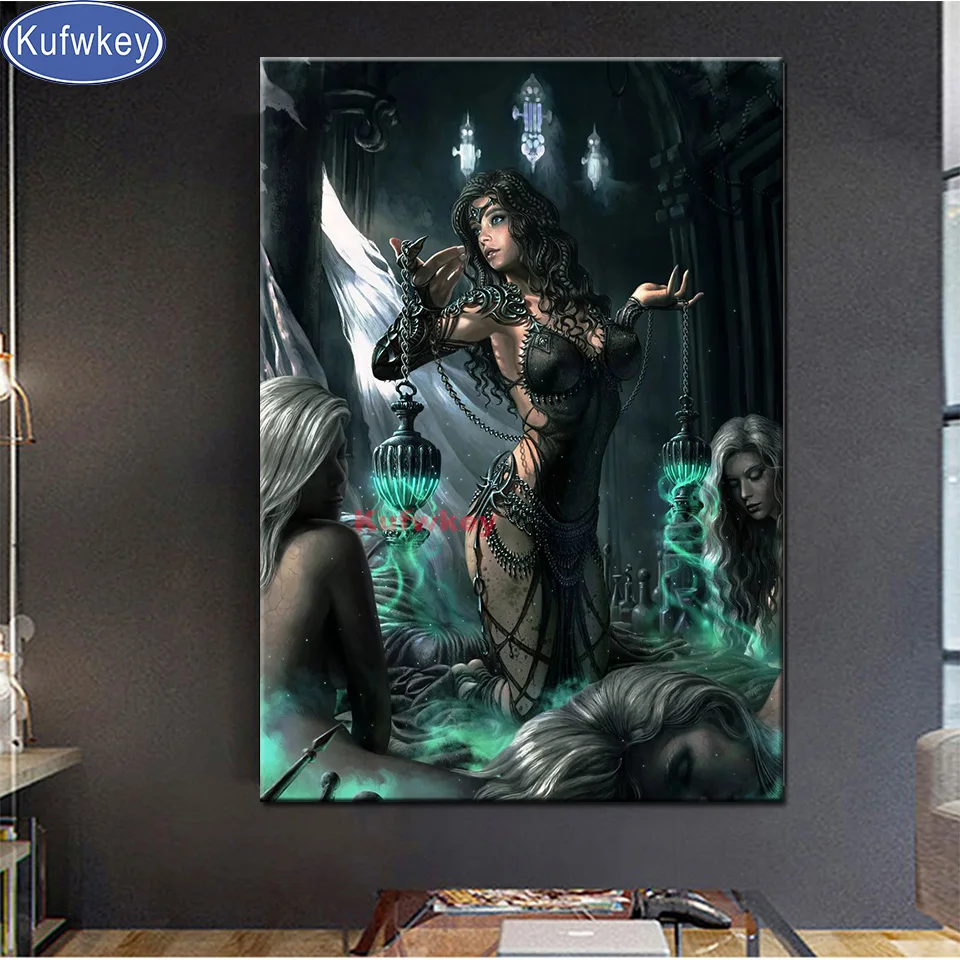 Полностью квадратная круглая Алмазная картина фантазия Готическая Женская Вышивка Алмазная вышивка крестиком тьма королева украшение дома искусство,