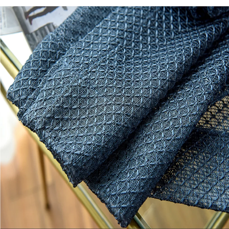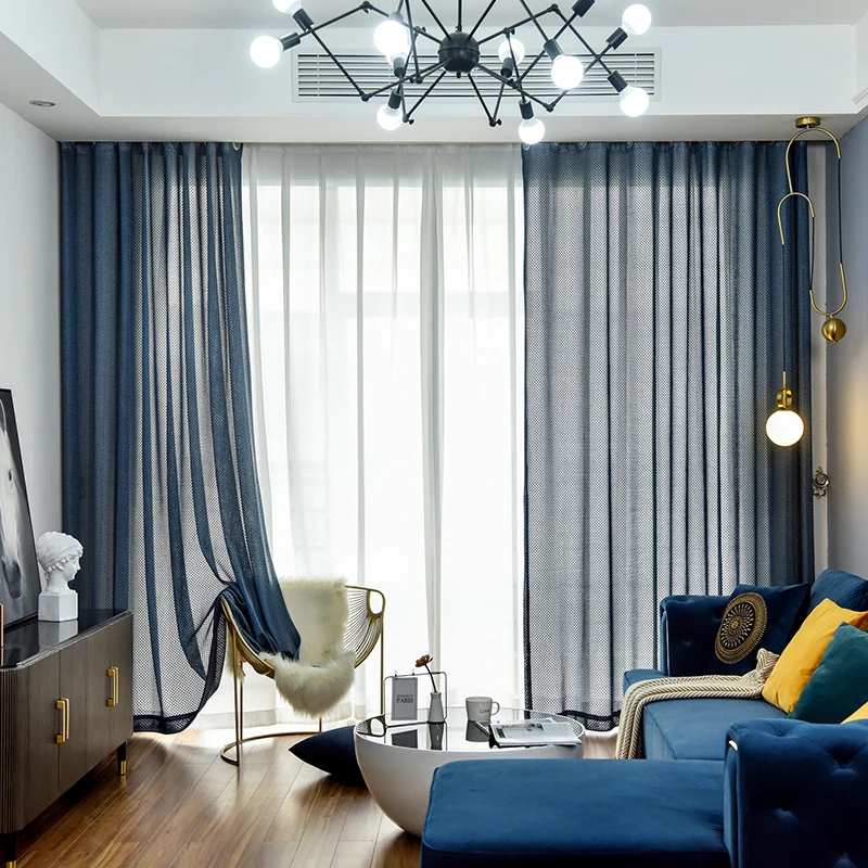 Современные синие занавески, пряжа с вышивкой, занавески для спальни, гостиной, балкона, занавески, занавески на заказ