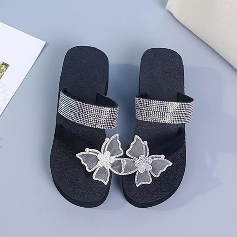Сандалии женские с бантом, босоножки с бабочкой и стразами, удобная элегантная обувь на плоской подошве, лето