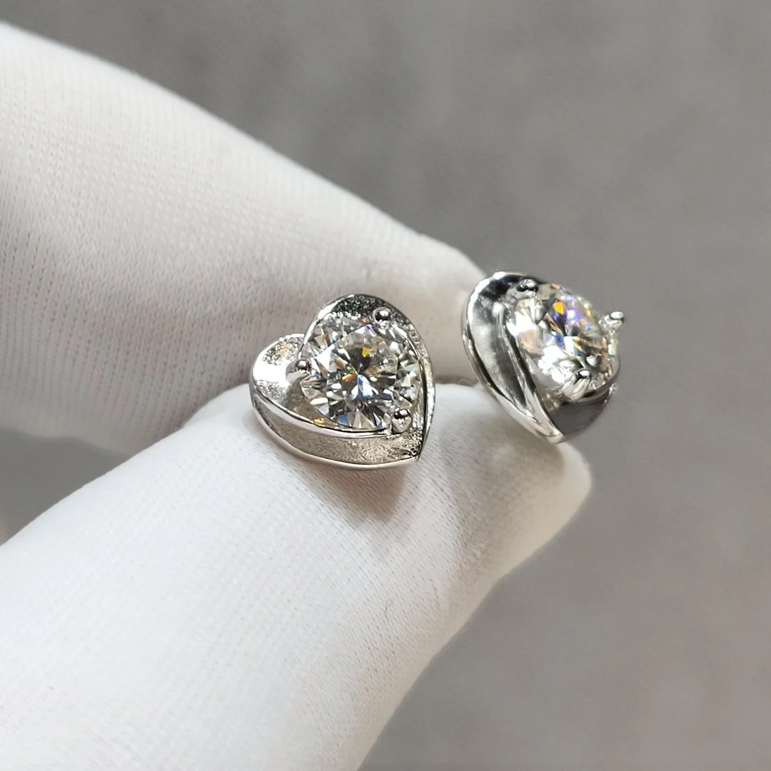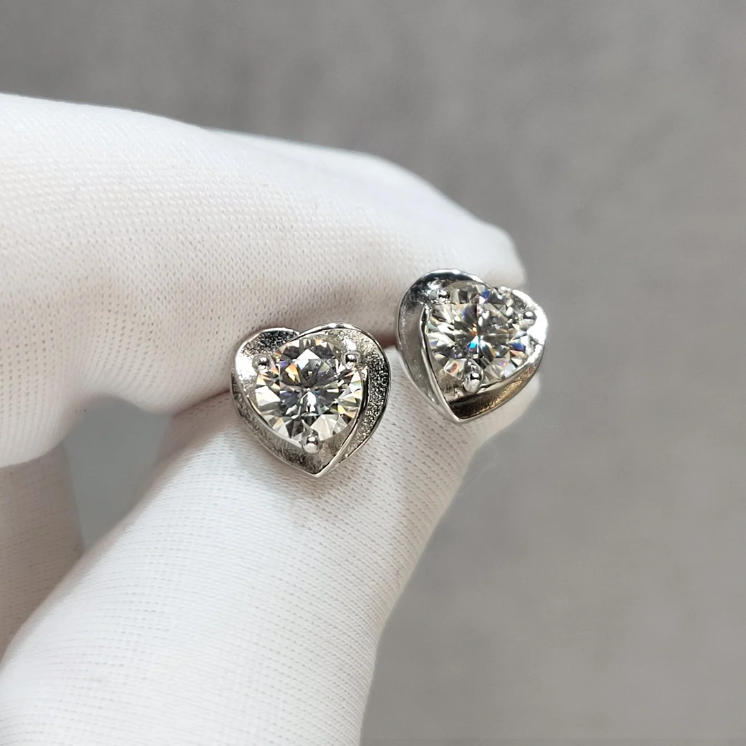 Серьги-сердечки с муассанитом, 18 карат, из белого золота
