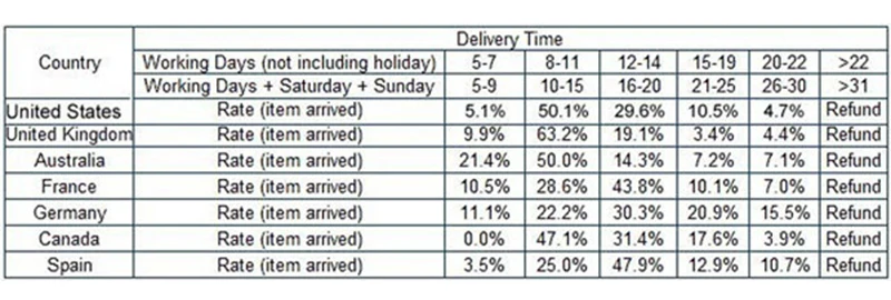 7. Из-за наличия на складе и разницы во времени, мы выберем доставку Вашего товара с нашего первого доступного склада для быстрой доставки.
