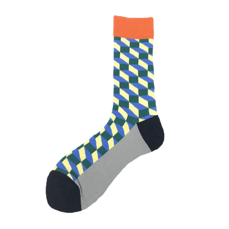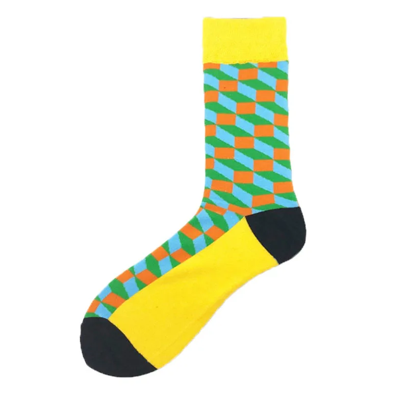 Забавные мужские счастливые носки, изысканный абзац, ромбовидный узор, ромбовидный рисунок, мужские ромбовидные трубки, забавные, большие размеры, чесаный хлопок
