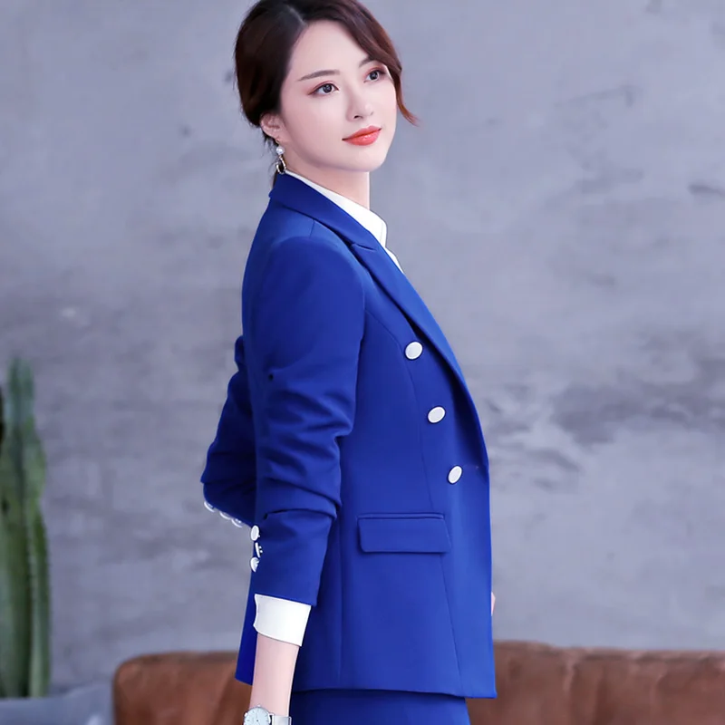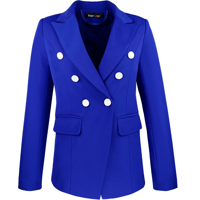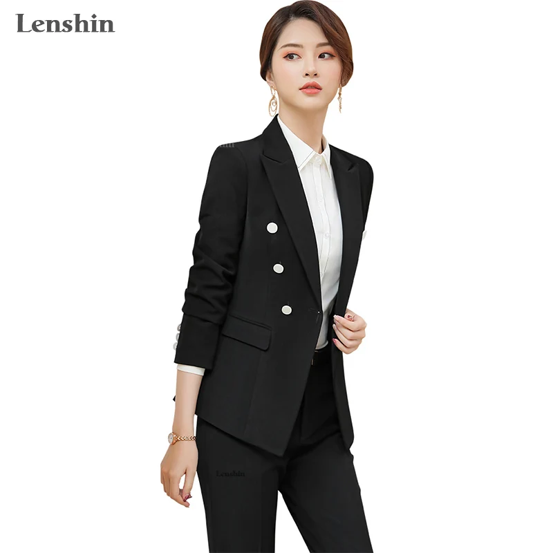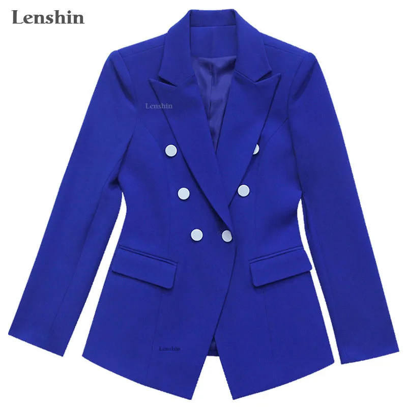 Женский двубортный Блейзер Lenshin, темно-синий элегантный деловой пиджак, верхняя одежда для работы